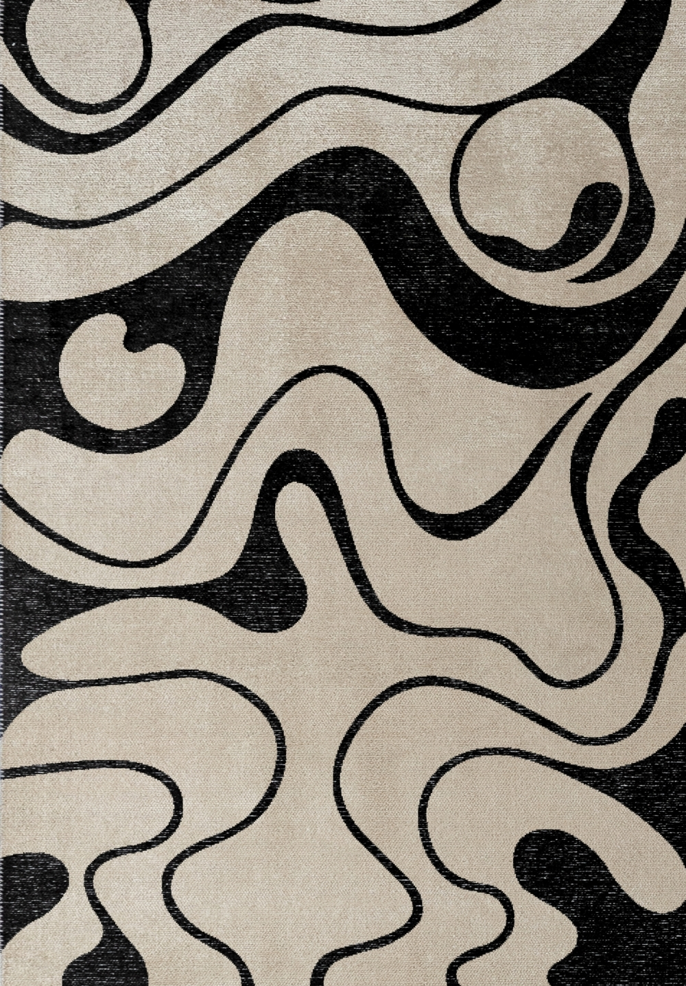 • Style 2 (S2): Introduces bold black lines woven into the soft beige base, adding contrast and energy. This style still holds a grounded serenity but delivers a more graphic and expressive tone—perfect for those seeking a statement piece that remains warm and inviting.